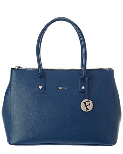 Studio : Furla Publisher : Furla Product Description Color/material: blue leather. Exterior design details: silver-tone hardware, removable keychain. Interior design details: fabric lining, interior pockets. Measures 14.5in wide x 10in high x 6.25in deep. Top handles drop 6.75in. Open top with magnetic closure. Protective feet at bottom. Imported. Please note: All measurements were taken by hand and are approximate; slight variations may occur. 0
