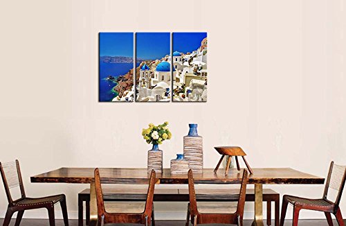 -. Title : Canvas P.R.Int Wall Art Painting For Home Decor Oia Town On Santorini Island Greece. Traditional And Famous White Houses And Churches With Blue Domes Over The Caldera Aegean Sea 3 Piece Panel Paintings Modern Giclee Stretched And Framed Artwork The Picture For Living Room Decoration Landscape Pictures Photo P.R.Ints On Canvas