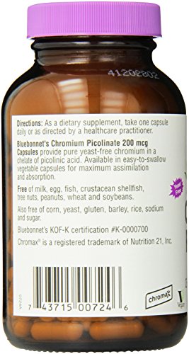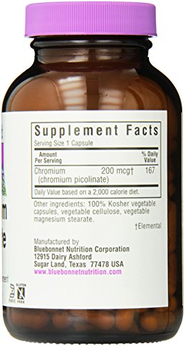 Bluebonnet's Chromium Picolinate is used to treat chromium deficiency, as an aid to controlling blood sugar in people with diabetes or prediabetes, to lower cholesterol, and as a weight-loss supplement. Chromium picolinate works together with insulin produced by the pancreas to metabolize carbohydrates. Bluebonnet's Chromium Picolinate provides chromium in a chelate of picolinic aicd. Available in easy-to-swallow vegetable capsules for maximum assimilation and absorption.Feature
