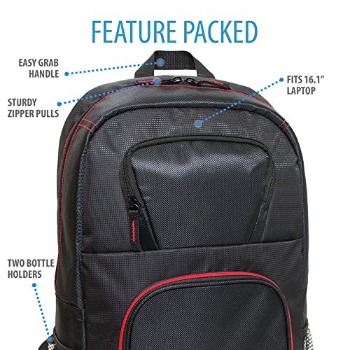 -. Title : V7 Vantage 16.1" Shock and Water Resistant Expedition Backpack For Dell, ASUS, HP, Acer, Toshiba, Apple, Lenovo laptops and notebooks - (CBV21RT-9N) Black / Red