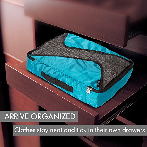HIGH QUALITY TRAVEL CUBES made of ultra light waterproof ECO nylon help compress and organize your luggage without any winkle on your clothes unlike vacuum packing bags. YKK nylon zipper and and fully finished seams to increase durability. 300D high density microfiber is much more durable than normal leather, plastic, cotton or canvas.