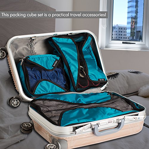 PACHING CUBES SET INCLUDES 3 DIFFERENT SIZE CUBES - 1 Large (18.9" x 14.17" x 4.33") 1 Medium (15.35" x 7.68" x 5.12") 1 Small (8.66" x 8.66" x 4.33"). When you are at home, you can compartmentalize similar size items, Let your clothes stay neat and tidy in their own drawers. When you're out, you can reasonably arrange luggage space to beat avoid baggage restrictions. Ideal gifts for travelers women, men, teen and kids seeking the best travel set. We are offer 100% Satisfaction Guarantee