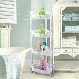 - ORGANIZE YOUR TOWELS, JEWELLERY, TOOLS AND MORE: This corner storage shelf unit is ideal for keeping your towels, tools, tissues, toilet paper, hair brushes, hair products, shampoo and lotion bottles, perfumes, jewellery, soap bars, sponges and anything you need out of the way!