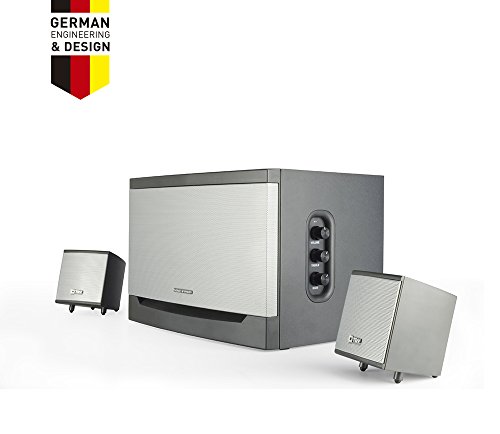 Exquisite design in every aspect, Riss seeks balance between shape and function, between aesthetics and crystal clear sound. With this perfect example of quality and design we redefine the concept of harmony. Specially created to fill your rooms with high quality sound. Riss has an output power of 32 watt RMS, 14 watts in the central speaker and 9 watts in each of the satellites. Special for watching movies, video games and music with admirable purity and definition.