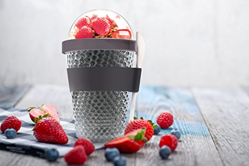Asobu Chill Yo2go for a 13 ounce Cold Yogurt Breakfast On the Go with a Melamine Spoon and Silicone Holder (Smoke)
