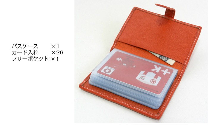 クリアポケット×26+前後の2枚・お財布のカードをまとめて入れておくことで、お財布の中がスッキリ・クリアポケットなので大変見やすいので、探しやすい構造です。