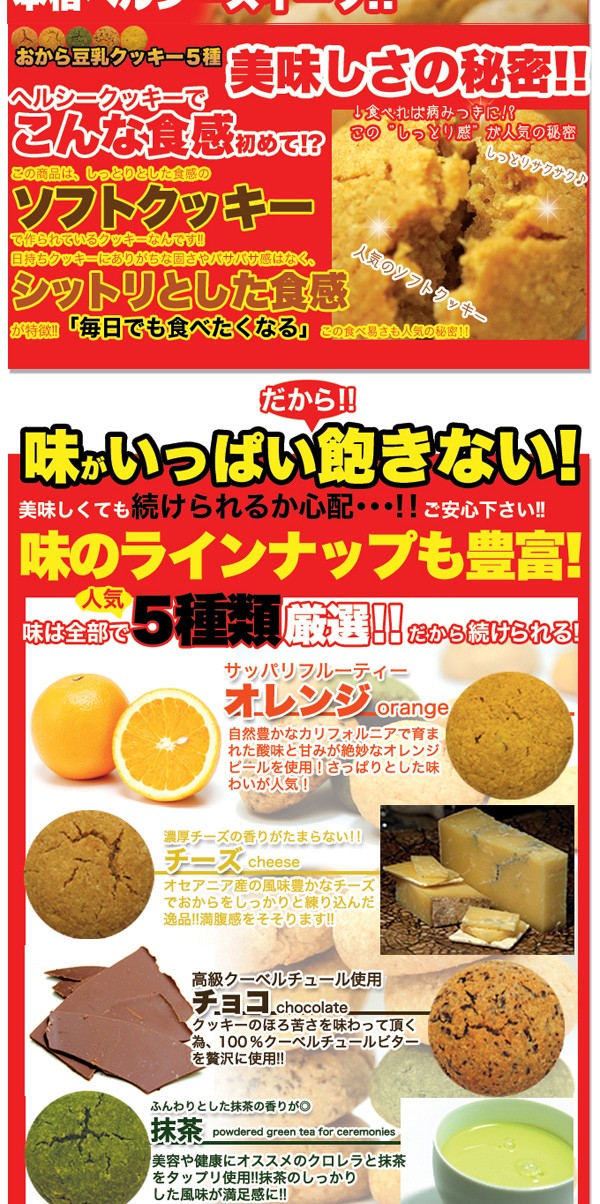おからクッキー(オレンジ・シナモン・チーズ・チョコ・抹茶) |