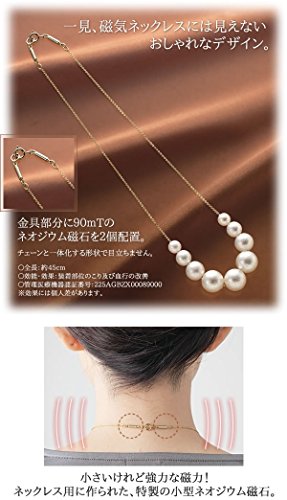 見た目は可愛くおしゃれ、実は管理医療機器の認可を受けた磁気ネックレス。気になるこりや血行の改善に役立ちます。お出かけ時にも違和感なく、いつでもどこでもつけられる!サイズ/全長:約45m重量/約7g 素材・材質/チェーン:真鍮、ネオジウム磁石 エアパール:ポリプロピレン 仕様/管理医療認証番号:225AGBZX00089000 磁束密度:90mT 製造国/日本Feature