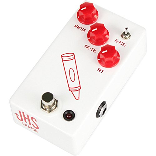 Studio : JHS Pedals Publisher : JHS Pedals Binding : Electronics Product Description In 1968 a piercing guitar tone came through the speakers on the Beatles Revolution 1. This is one of the most famous uses of plugging a guitar straight into a mixing console and creating the now referred to as Direct-In Distortion". That tone is one of the most recognizable and unique guitar tones of the last 60 years and was one of the inspirations for the JHS Colour Box that JHS released in May of 2014. JHS sought to recreate that same compressed bite and fuzz that you get when plugging directly into a British style preamp but in a compact pedal. What they came up with was something even more than they imagined, and the Colour Box has become a staple among many producers, guitar players, and multi-instrumentalists world wide. Many players over the last few years have expressed their interest in a unit that is like the Colourbox but more streamlined for the one basic application of a dirt box. No XLR function, no 3-band EQ Just the dirt in an easy to use format for guitarists So JHS decided to pull the Crayon out of the Colour Box.The controls are Master, Pre, Tilt, and Hi Pass. Master" is your classic volume control that controls the overall output. Pre" works as a drive or fuzz control like turning up the pre-volume on a preamp to send it in to overdrive. As you reach 75% and above, the fuzz will begin to gate out as you pick the strings harder when playing, it is very responsive to your input signal and touch. The Tilt" acts as an active tone control that is flat when the knob is at 50%. When turned to the left, the Tilt control boosts bass and simultaneously cuts treble. When turned to the right, it boosts treble and cuts bass. This allows for some very unique and usable adjustments to the overall feel of the Crayon. The Hi-Pass toggle switch lets you activate from two different frequencies located on the side of the pedal, 200Hz and 750Hz. These settings let only the high band frequencies above them pass, and this allows for some amazing to 0