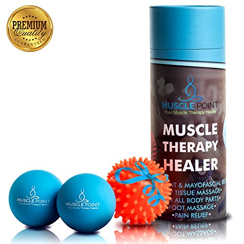 Massage Therapy Yoga Lacrosse Balls – By Muscle Point 2 Roller Balls For Deep Tissue Trigger Point and Myofascial Release – Includes BONUS Spiky Ball For Feet Massage and Mesh Carry Bag
