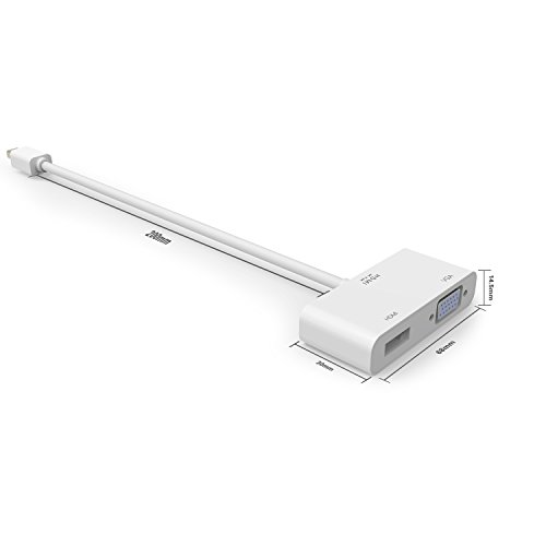 What you get: 1* Mini DP (Thunderbolt) to HDMI VGA Adapter. 1 Year Warranty. Lifetime customer service.