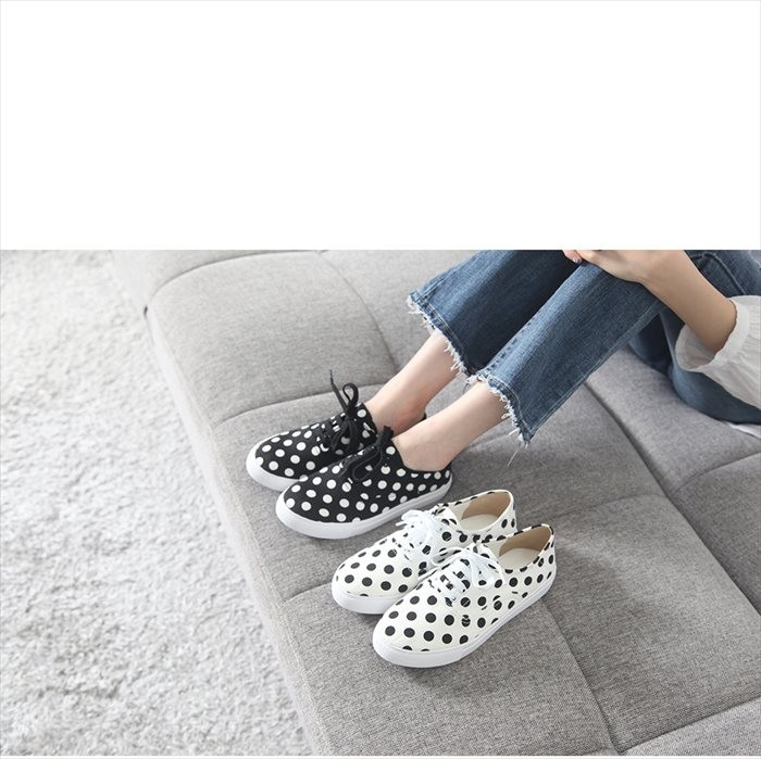 商品名:スニーカー レディース レースアップ ドット柄 2017 秋冬 ファッション 靴 婦人靴
