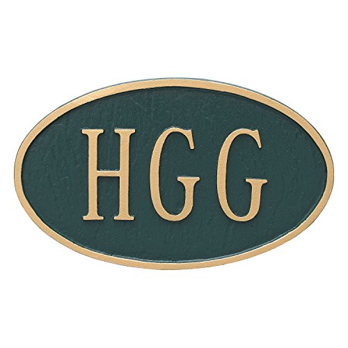 Montague Metal Classic Arch Estate Two Line Address Sign Plaque with Lawn Stakes, 14" x 24", Hunter green/Gold