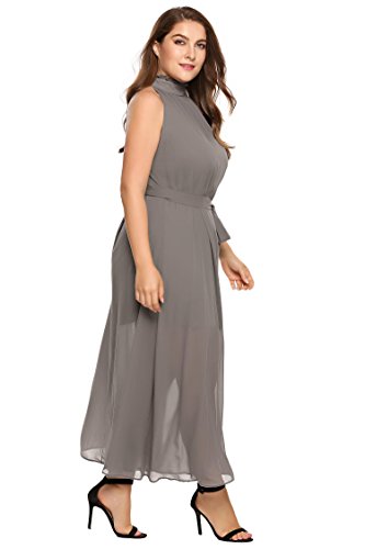 Women Plus Size Chiffon Halter Sleeveless Solid Belted Maxi Dres