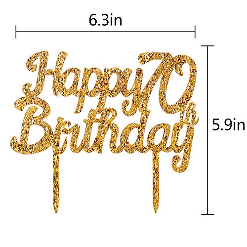 Gold Glitter Acrylic Happy Birthday 70th Cake Toppers,Party decor Decorations(6.2-inch)