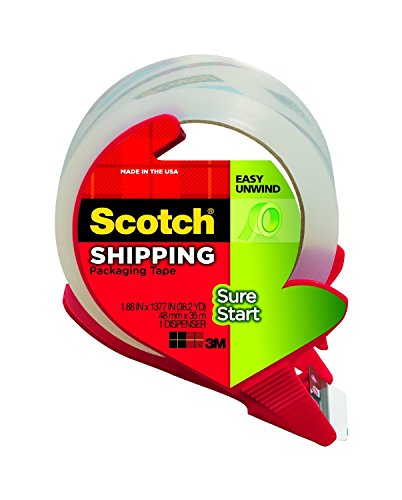 Scotch Sure Start Shipping Packaging Tape, 1.88 x 38.2 Inches, 4 Rolls and 2 Dispensers