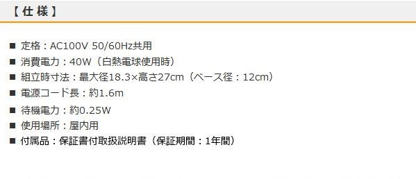 fk094igrjs金属部分に軽く触れるごとに明るさが低・中・高・消灯と変わりますシンプルなデザインでモダンな空間を演出します サイズ 個装サイズ:20×20×30cm 重量 個装重量:760g 製造国 中国 タッチセンサー3段階調光 ※電球は別売です(使用電球/口金:E26) 以下の指定以外の電球、特殊電球は使用しないでください 発火、発煙、火災の原因となります 【白熱電球】 LC(クリア)、LW(ホワイト)形の40W以下を使用してください 【ハロゲン電球】 一般照明用白熱電球互換形ハロゲン電球の40W以下を使用してください 金属部分に軽く触れるごとに明るさが低・中・高・消灯と変わりますシンプルなデザインでモダンな空間を演出します ご注文後3~4営業日後の出荷となります
