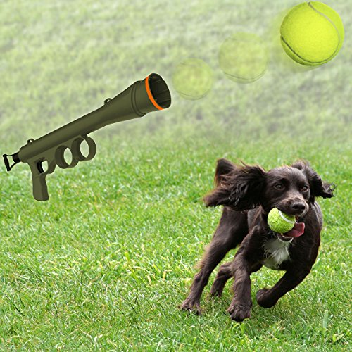 Studio : Paws Pals Publisher : Paws Pals Binding : Misc. Product Description Dogs love to please. Playing fetch is the best game to keep your pet active and confident. It's healthy for your dog and for you. The Paws Pals Bazook-9 Ball Cannon Pet Toy accepts a tennis ball and has storages for two additional ones. Pull back the rear rod for travel distance adjustment and watch with joy when your dog returns with the ball. 0
