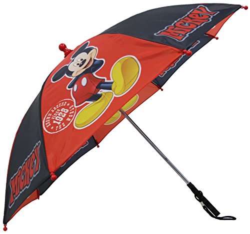 Brighten up any rainy day with this adorable Disney Mickey Mouse Red and Black Boys Umbrella - Toddler! Features Mickey Known Around The World Since 1928... A Mickey umbrella is a cute and colorful way to stay dry or block the sun when shade is needed! Wipe with a damp cloth to clean, Do not put away wet, One Size Fits Most Kids, Officially Licensed Disney ProductFeature