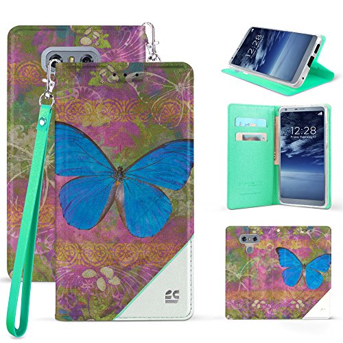 -. Title : LG G6 Case PU Leather TPU 2 Tone Card Slot Magnetic Close Strap Kickstand Mint White With Clear Gel Flowerdecoblue