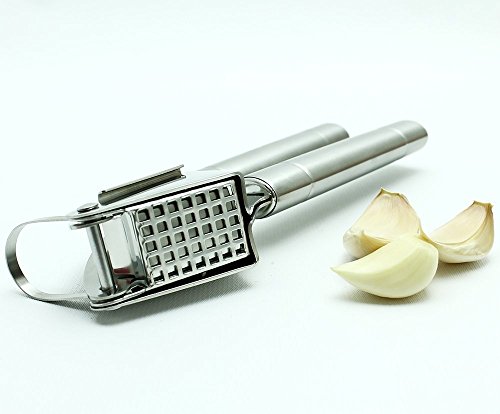 NEW and IMPROVED : Improved features include Hanging Hook, Big Square Holes, Free Brush, and Heavy Duty Handle, making this the best rated Garlic Press.