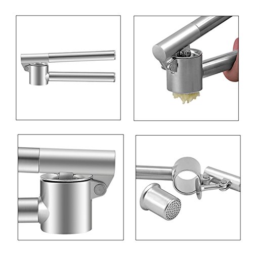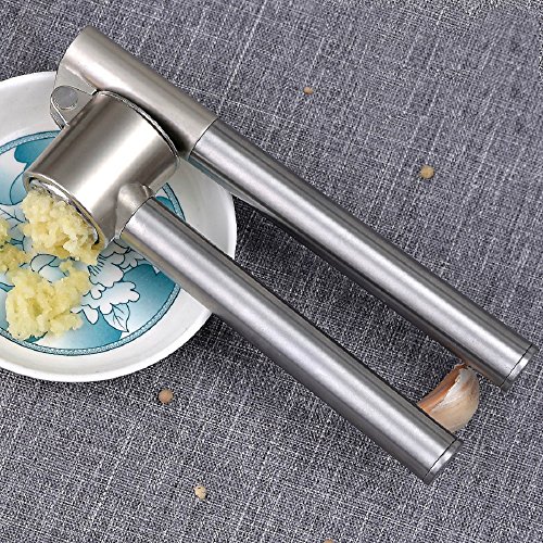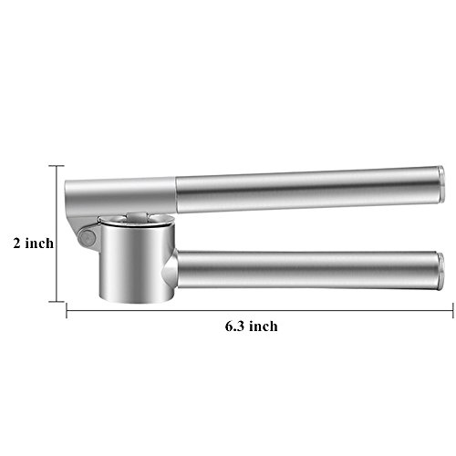 NEVER RUST NOR BROKEN - The garlic press will never rust or break because of the stainless steel handle and the zinc alloy head .