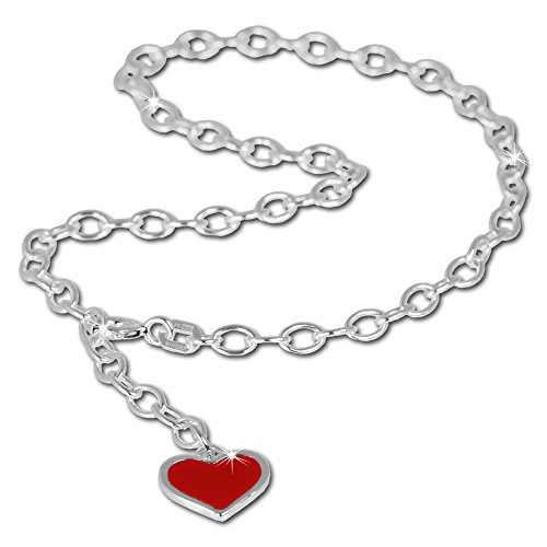 -. Title : SilberDream anklet red heart 925 Sterling Silver 9.8 inch SDF006
