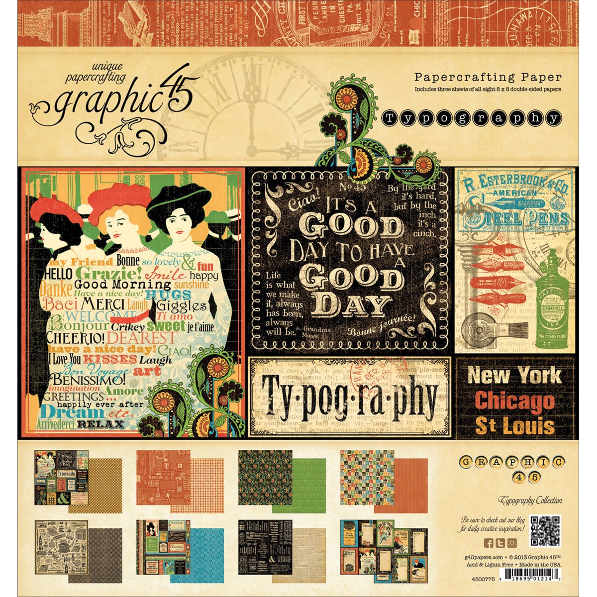 Graphic 45 Typography Pad for Arts and Crafts, 8 by 8-Inch