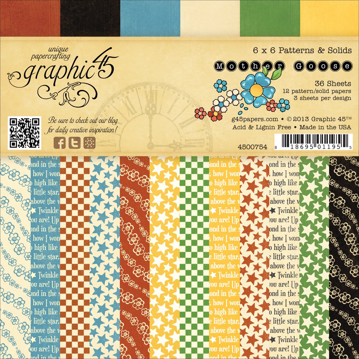 Graphic 45 Mother Goose Patterns and Solids Pad, 6 by 6-Inch