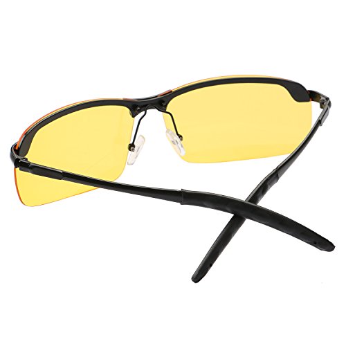 - Feature : Good for both day driving and night driving,also can be worn in rain day, eliminate glare and reduce eye fatigue, provide clear vision and protect eyes perfectly / Lightweight and stylish design, suitable for driving, bicycle, motorcycle,fishing, running,golf and other outdoor activities / Ideal gift to father, husband or boyfriend, 100% well worth the money / Frame color: Black, lens color: Yellow, size details please refer to the left picture or description in below / Package with ZIP case, durable and portable
