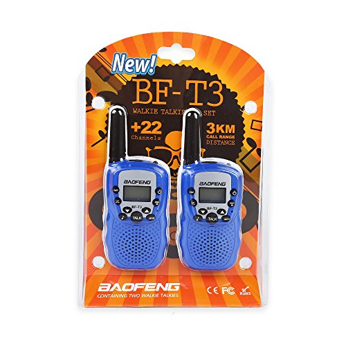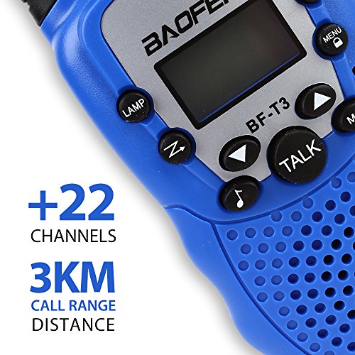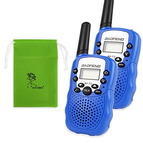 BaoFeng T-3 Kids Walkie Talkie Two Way Radio (1 Pair), Blue + SainSonic Velvet Bag