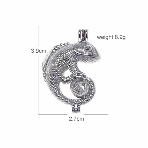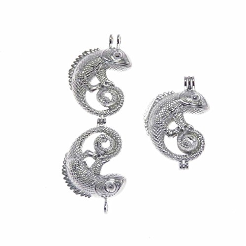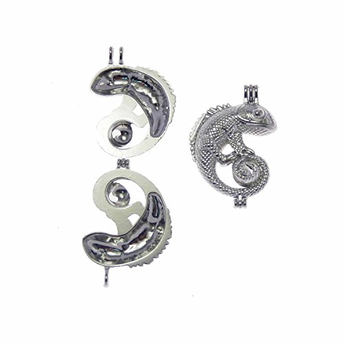 JulieWang 10pcs Anitqued Silver Small Locket for Aromatherapy Essential Oil Diffuser Pendant Charms - Lizard