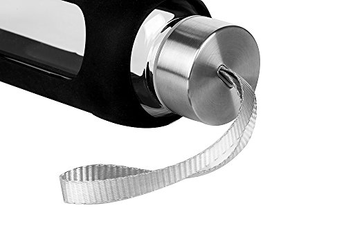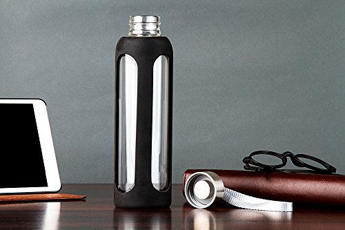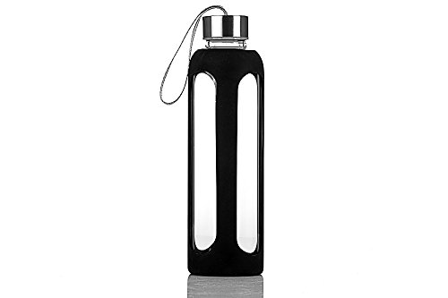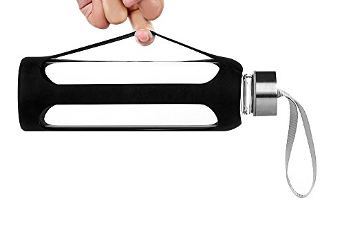 UNIGlASS Portable 18oz(550ml) Eco-friendly Borosilicate Glass Bottle With Anti-slip Silicone Sleeve ,304 Stainless Steel Caps Sturdy Carrying Loop. --Travel bottle --Sports bottle