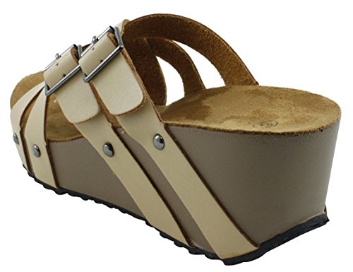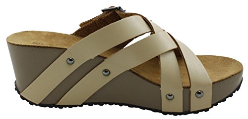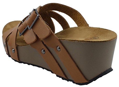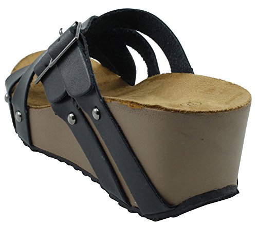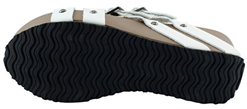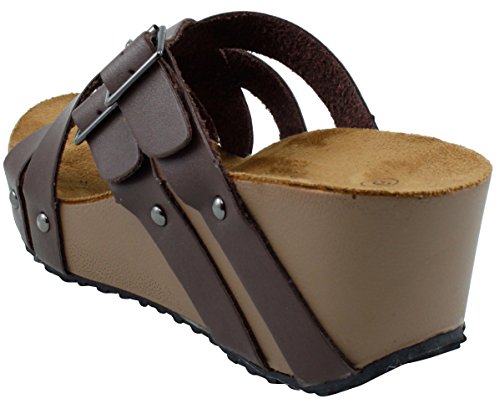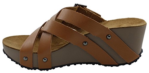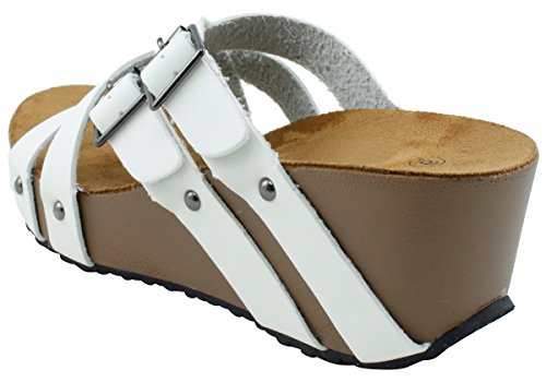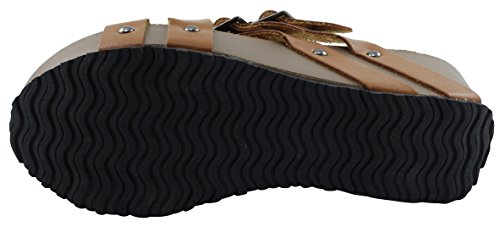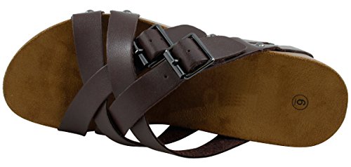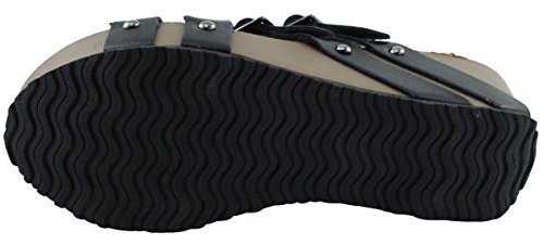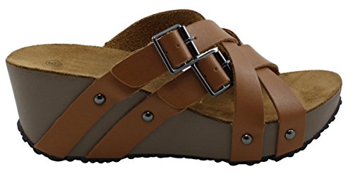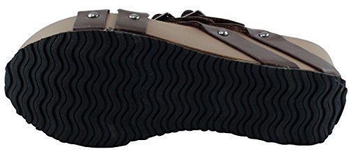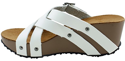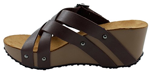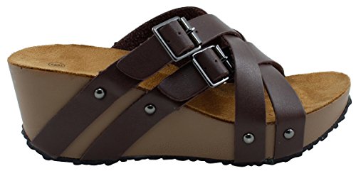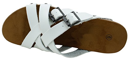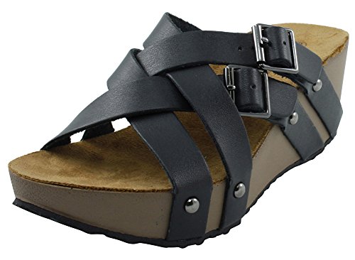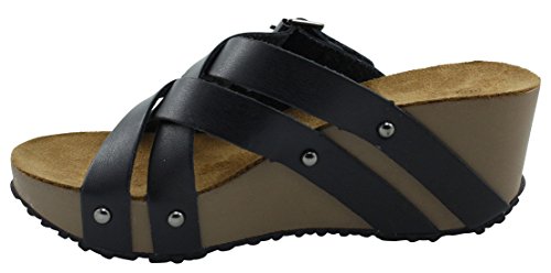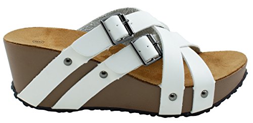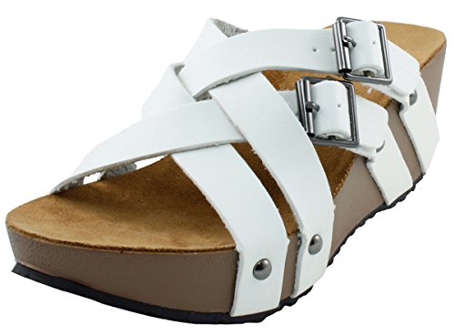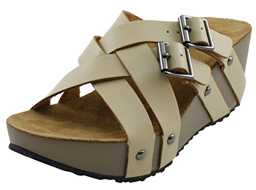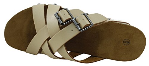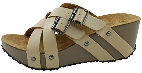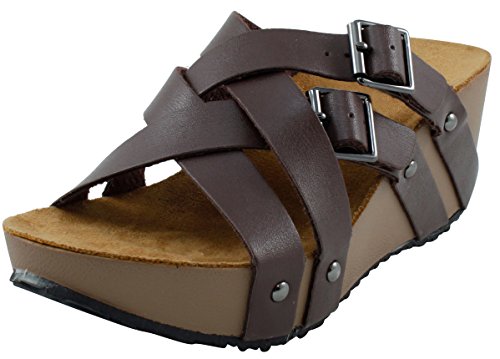 Product Description This wedge sandal from Cambridge Select features crisscross vamp straps, stud and buckle detailing, platform sole, and chunky wedge heel. Imported. 0