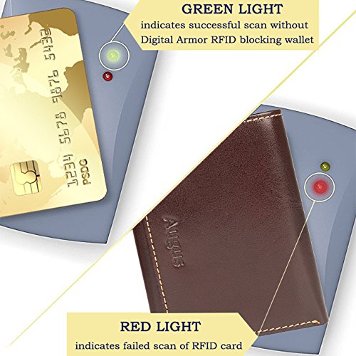 Our wallets are safe enough When you're shopping on holidays, RFID wallet secures your credit card and other RFID-chipped cards. When you're travelling aboard, RFID blocking wallet protects your personal information stored on RFID chips.