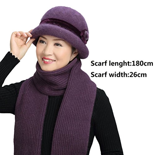 | (Zhhlinyuan)/Accessories/Hats/DIRECT FROM USA/Zhhlinyuan Cozy Knitted Flowers Decor Wool Cap Women Thick Warmer Hats Scarf Set |