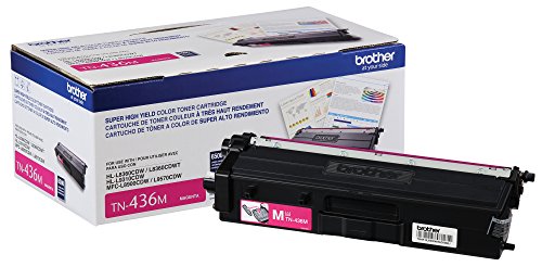 -. Binding : Office Product -. Brand : Brother -. Color : Magenta -. EAN : 0012502646143 -. Feature : Brother Genuine TN436 Super High Yield Magenta toner cartridge. / Delivers crisp, professional color laser output with 6,500 page yield. / Designed as part of a complete printing system to provide superior quality results. / Precisely balanced for even flow and consistent toner distribution on the paper. / Enjoy ongoing improvements and technical changes, which regularly occur throughout the hardware lifecycle. -. Label : BROTHER -. Manufacturer : BROTHER -. Model : TN436M -. MPN : TN436M -. NumberOfItems : 1 -. PackageQuantity : 1 -. PartNumber : TN436M -. ProductGroup : Office Product -. ProductTypeName : INK_OR_TONER -. Publisher : BROTHER -. Studio : BROTHER -. Title : Brother Printer TN436M Super High Yield Toner-Retail Packaging , Magenta -. UPC : 012502646143