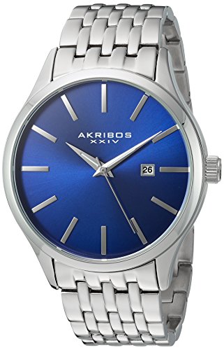 -. Title : Akribos XXIV Men's Blue with Silver-Tone Accented Dial and Silver-Tone Case on Silver-Tone Bracelet Watch AK941SSBU