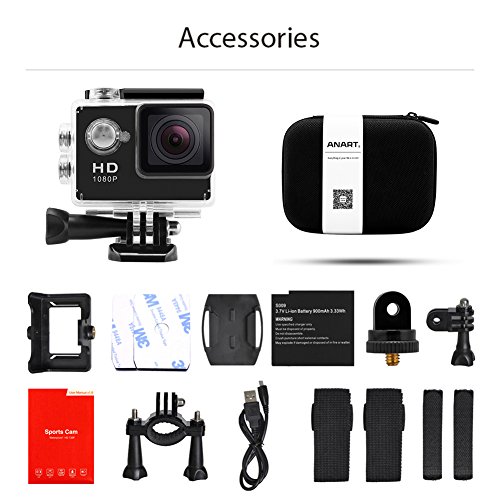 ANART sports camera, comes with a small size shockproof bag, which can keeps the camera and accessories together, it's very convenient for you to carry everywhere.Also give a great protection of your camera and accessories.A rechargerable battery allows you make fun of this camera all day.