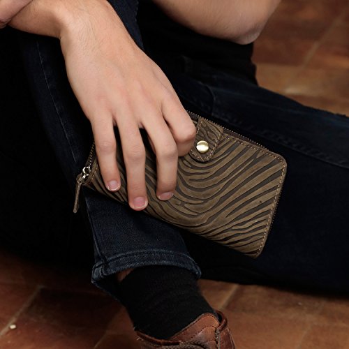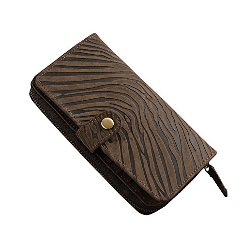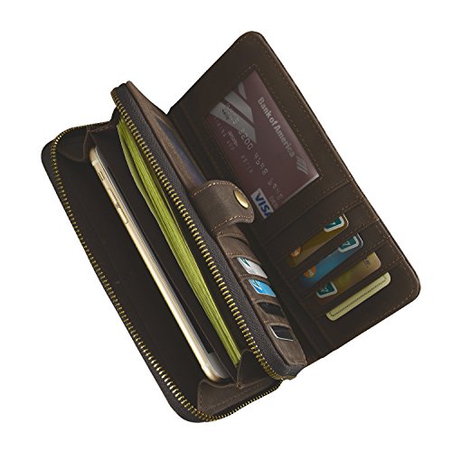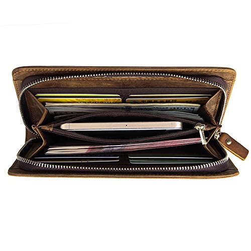 -. Feature : Premium Italian cowhide leather makes this wallet looks very luxurious and durable,Vintage and unique design looked a lot different to most of the wallets / Size-L:7.3inch/18.5cm,W:3.5inch/8.9cm,H:1inch/2.54cm. Comes with a removable handmade leather strap, keeps everything secured / 6 card slots,1 zipper pocket,1 interior pocket (fits cell phone), 2 bill slots. With multiple pockets for different usages, can store money,cell phone, cards, etc. Suitable for all casual or business occasions and so on / Unique long style zipper bifold wallet design with embossed woven wrist strap and sewing craft / Vintage, elegant and luxury, best gift for men women with a gift box. Retro and simple style which shows your outstanding temperament
