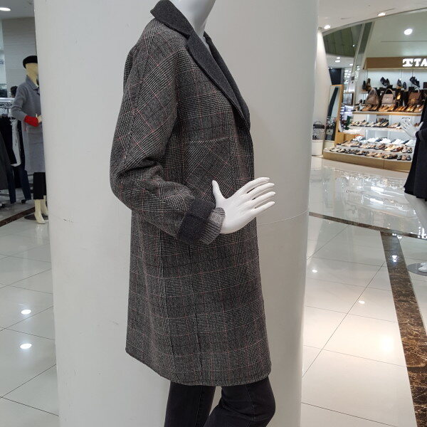 체크하프코트이며 핸드메이드적용하여 얇고 고급스러우며 세련미가있다.