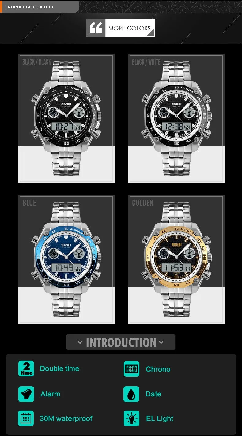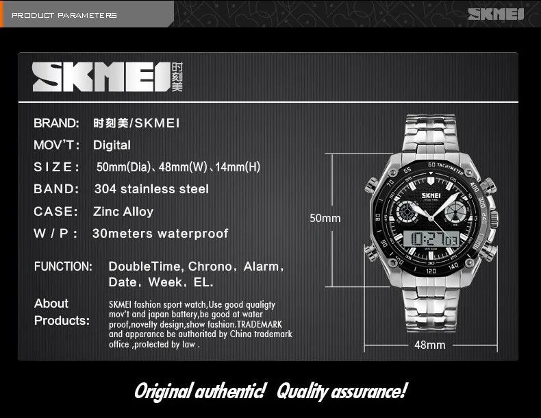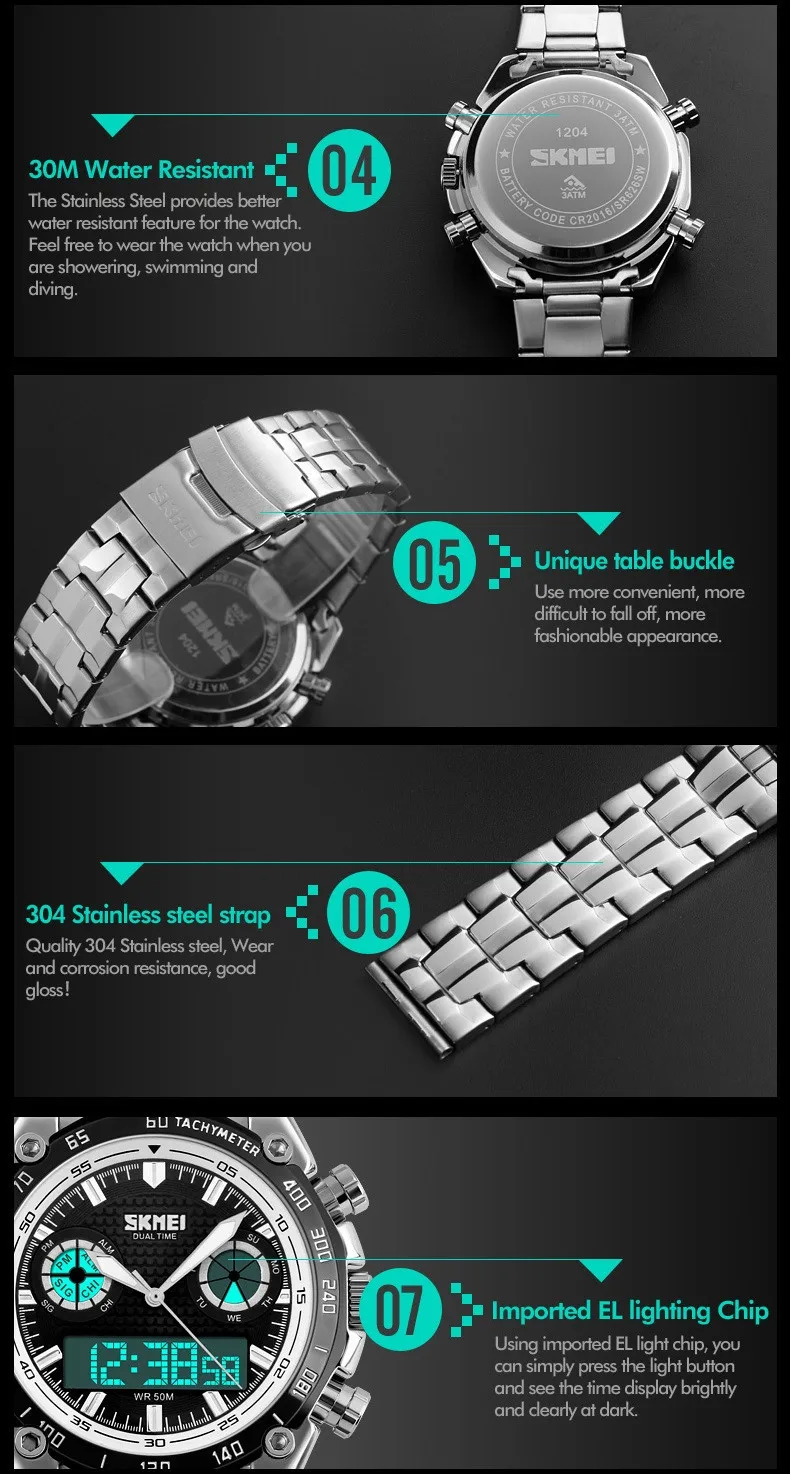 Feature:Alarm,Back Light,Water Resistant,Shock Resistant,Complete Calendar,Chronograph,Auto Date