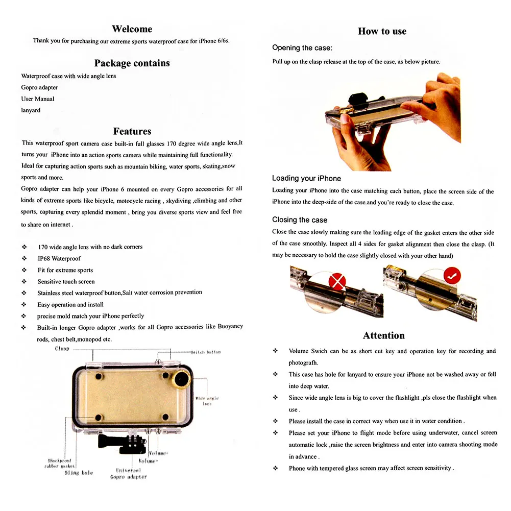 Model Name:Waterproof Case with 170 Degrees Wide Angle Lens