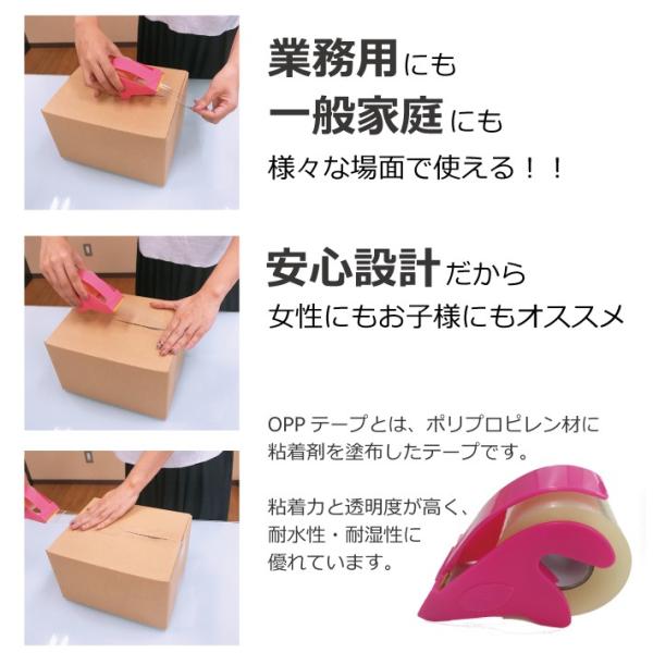 コンパクトで安全に配慮したデザインは、女性や子どもに安心 ラブテープ Rab Tape OPP粘着テープ 48mm×50M巻 テープカッター付