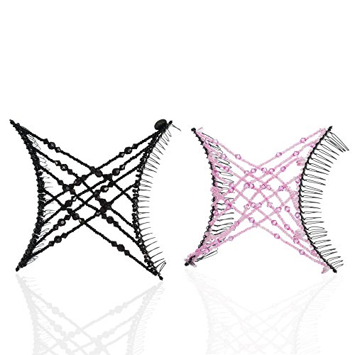 HairZing Criss-Cross Comb 2-Pack, Hair Accessory Perfect for UpDos and Twists, Black/Pink, Large
