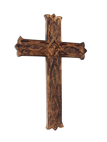 The carved cross has a wonderful antique burnt finish and has alluring patterns on the surface done by hand.
