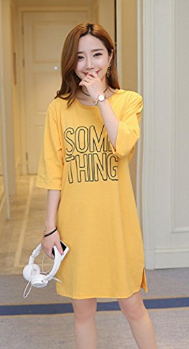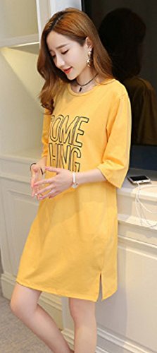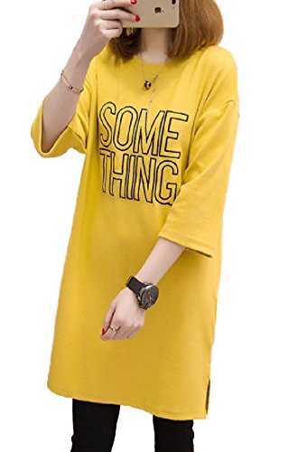 -. Feature : プリントロゴとサイドにスリットが入っているロングTシャツです。ゆったりとしたお作りになっておりますので、ルームウェア(部屋着・寝間着)としてもお使いいただけます。 / デニム、スキニー、キャップ、スニーカー、ブルゾン、パーカーと合わせてカジュアル&ボーイッシュに。チュールスカート、ベレー帽、カチューシャと合わせてガーリーに。シンプルなデザインですのでコーディネートしやすいアイテムです。そのまま1枚でさらっと着れることもできるのでおしゃれがしたいけれど時間がない日にはおすすめのワンピースです。 / ゆったり着用することができ、妊婦さんや産後のママさんにも着用していただけます。首元はVネックとなっており、スッキリした印象を与えてくれ快適に着用して頂けます。カラーはブラック、ホワイト、イエローの3色からで、サイズはM、L、XL、2XLの4サイズになっております。※海外品のため小さめのお作りになっております。普段着ているサイズより2サイズほど大きいものをおすすめいたします。細身の方も普段着ているサイズより1サイズ上をおすすめいたします。 / ゆったりと着れる着心地のいいビッグTシャツです。アウター次第で春、夏、秋、冬のオールシーズン着れるワンピースになっています。袖が七分丈まであるのと丈がお尻まで隠れるロングサイズになっていますので二の腕が気になる方や体型が気になる方でも安心して着ることができます。さらにチェックシャツやデニムシャツを腰に巻くことでスタイルアップができます。シンプルなTシャツですので時計・ベルト・ネックレス・ブレスレットなどのアクセサリーをプラスすることでワンランク上のおしゃれさんになれます。 / 友達や彼氏とのおそろいコーデにもぴったり。ゆったりとした動きやすい服ですのでライブ、アウトドア、部屋着、寝巻き、ルームウェアと場所を問わず活躍できる万能な服です。カラーによってイメージも大分変わりますのでカラバリで持って気分によって変えるのもおすすめです。はやりすたりのない商品になっておりますので、来年・再来年と長くお使いいただけます。