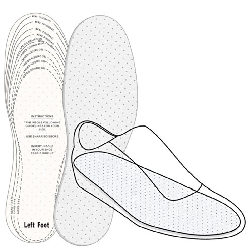 -. Feature : Cushions your feet for long hours of walking or standing / Comforts and supports your feet / Fits all shoe styles and sizes; Trim to Fit / Wicks away moisture / Includes 1 pair