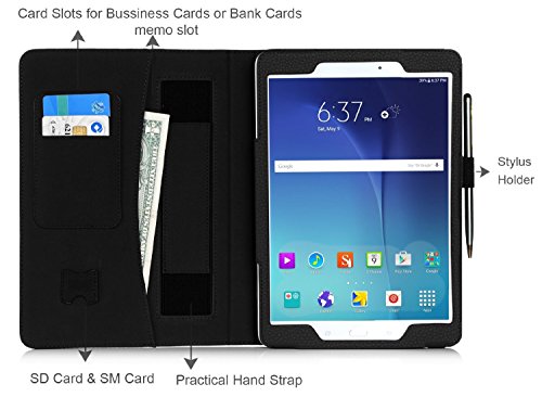 FYY Samsung Galaxy Tab A 9.7 Case - Premium PU Leather Case Stand Cover with Card Slots, Pocket, Elastic Hand Strap and Stylus Holder for Samsung Galaxy Tab A 9.7 inch (P550) Black