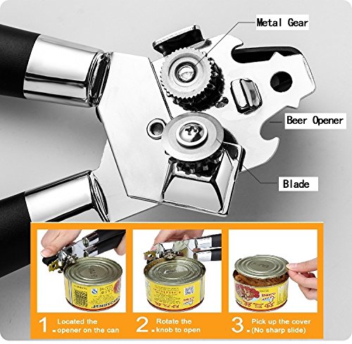 PREMIUM QUALITY- Our state-of-the-art can opener is crafted from high-qualitystainless steel, 100% food safe material